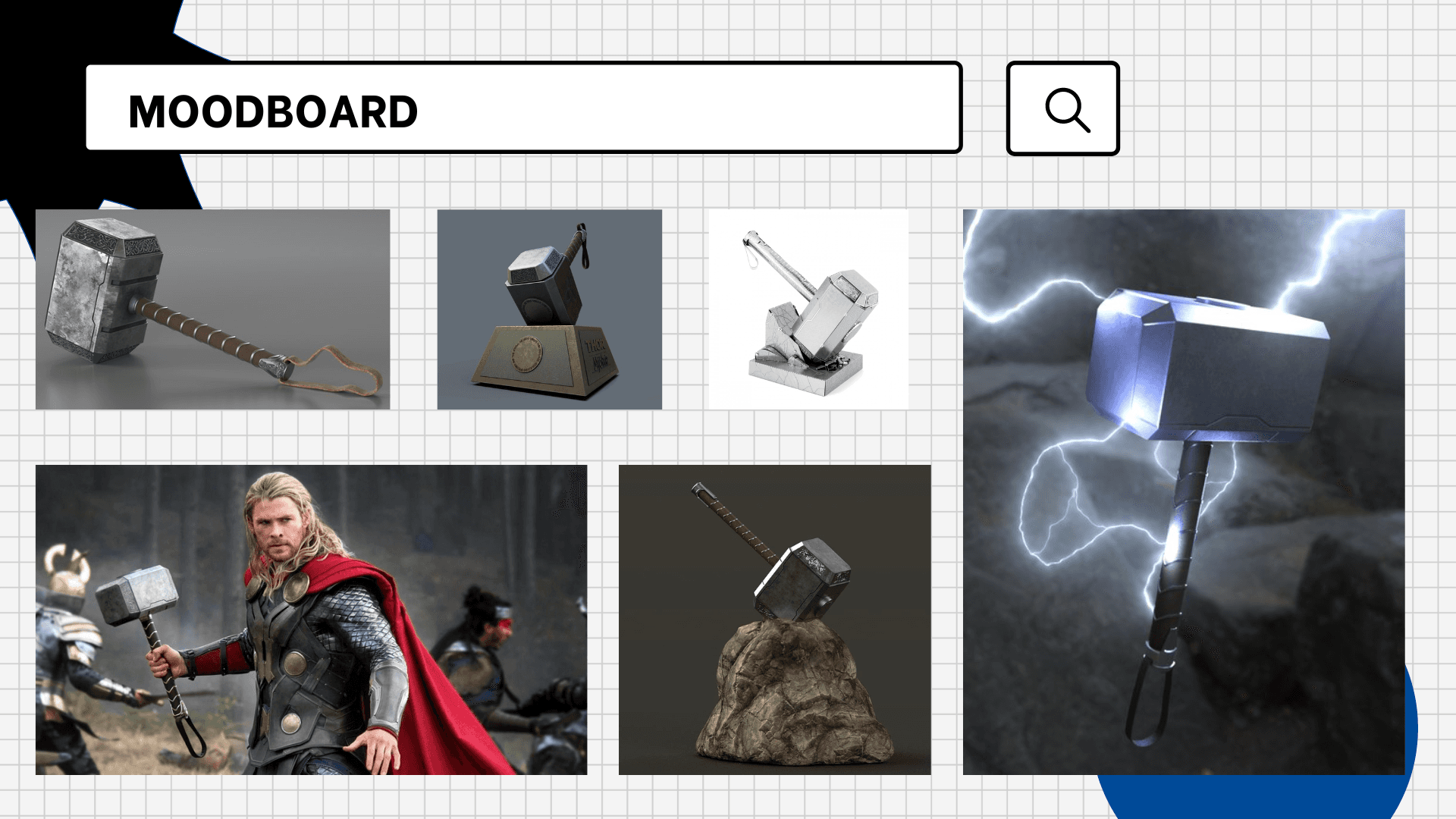 Ce projet de modélisation 3D s’articule autour de la création du marteau de Thor, élément central de l’univers Marvel. La conception s’est appuyée sur un moodboard défini en amont, afin de poser une direction artistique claire et cohérente avec l’esthétique du personnage et de ses films.