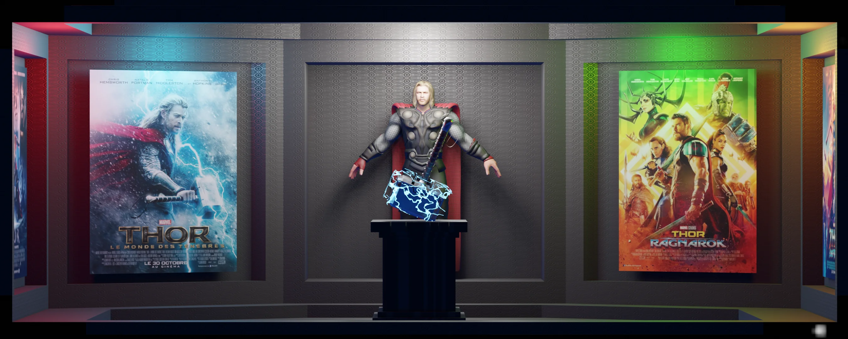 Une scène complète pensée comme un mini-musée dédié à Thor